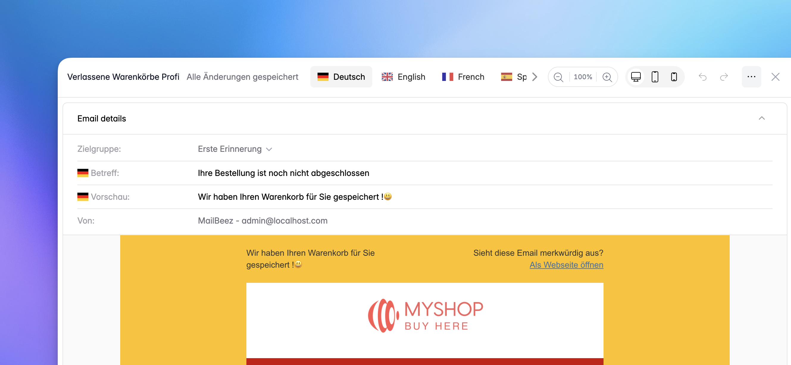 Hochmoderner E-Mail-Editor & Erweiterte Vorschau